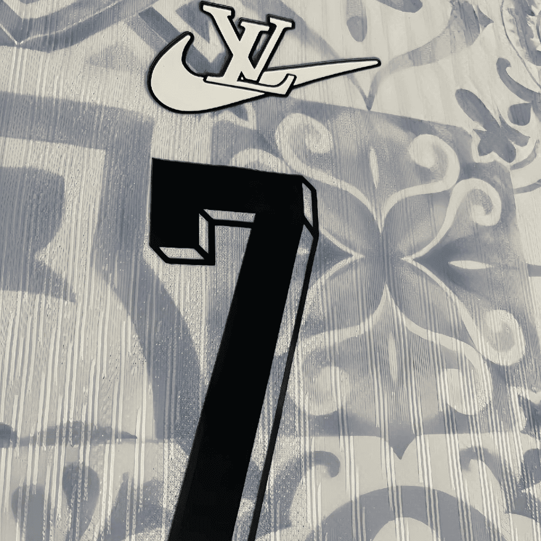The Portugal Louis Vuitton 2024/25 shirt unites the deep red of the national team with refined pattern work. Portugal’s football legacy, led by icons such as Cristiano Ronaldo and Eusébio, is reflected in this shirt’s rich design and emblem placement symbolizing national unity and confidence.